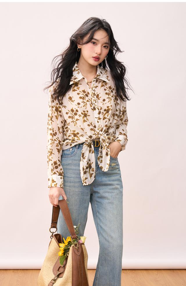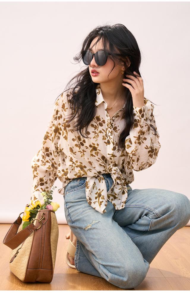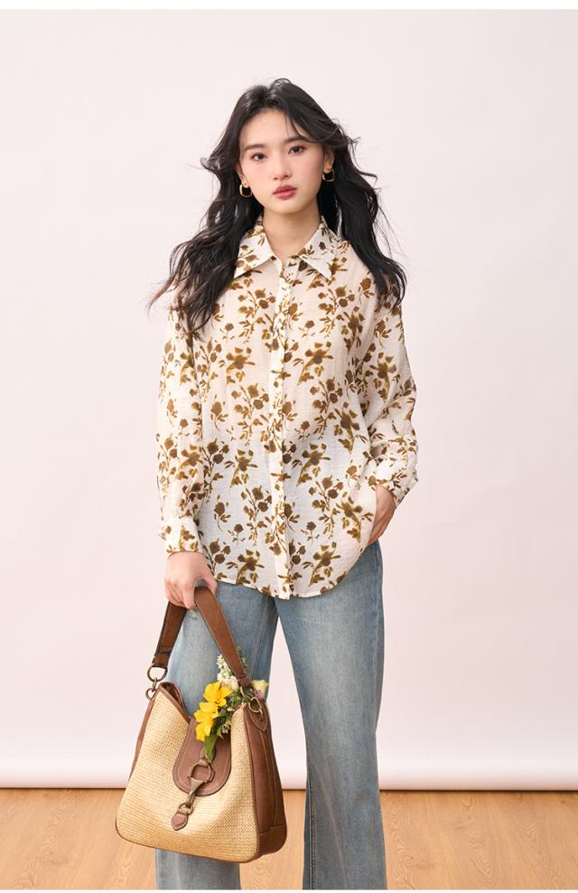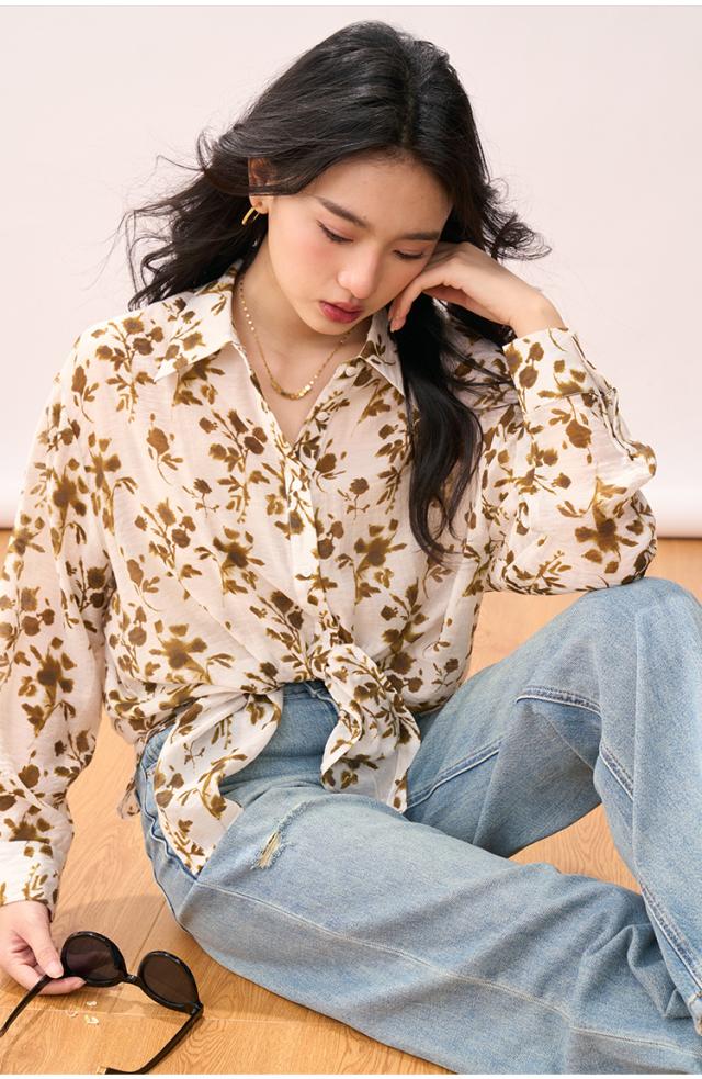 シャツ レディース 夏 アロハシャツ 長袖 紫外線防止 花柄プリント おしゃれ 上品 薄手 涼しい 着?せ ゆったり 通勤 旅行