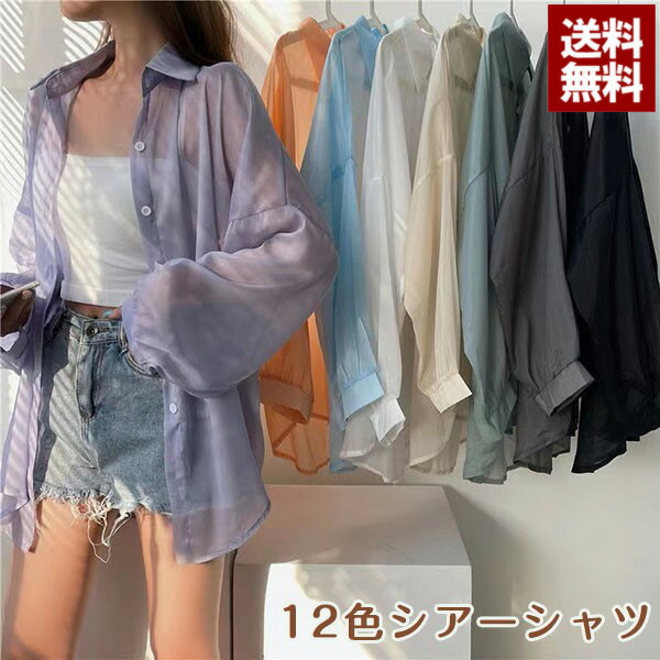 新色 12色 シアーシャツ 透け感 レディース 日焼け止め ブラウス 長袖 トップス シャツ 重ね着 オーバーサイズ トレンド シースルー シンプル カジュアル おしゃれ ゆったり 日焼け対策 羽織 夏物 ホワイト