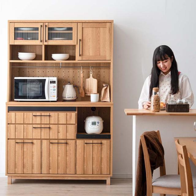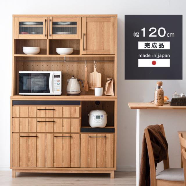 食器棚 幅120cm 完成品 大川家具 大容量 キッチンラック 引き出し 組み立て不要 奥行き40 キッチンボード レンジボード レンジラック 木製 カントリー おしゃれ キッチン収納【超大型】【後払/時間指定NG】