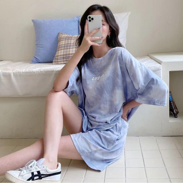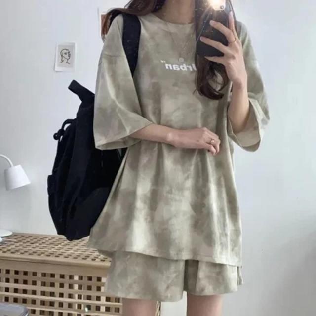 レディース セットアップ Tシャツ 半袖 2点セット ルームウェア 体型カバー ゆったり カジュアル タイダイ柄