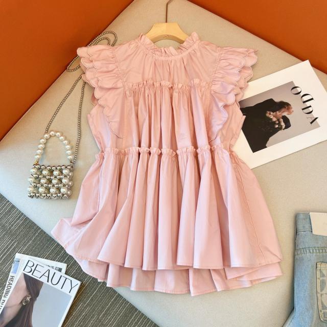 ブラウス Aライン レディース トップス フリル 裾フリル ノースリーブ ハイネック フリルブラウス おしゃれ 無地 お洒落 可愛い デート夏 韓国 送料無料 20代 30代