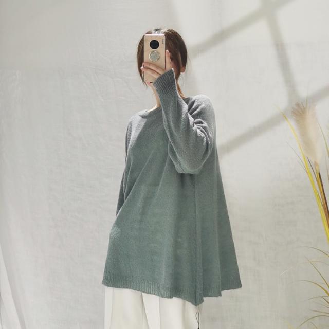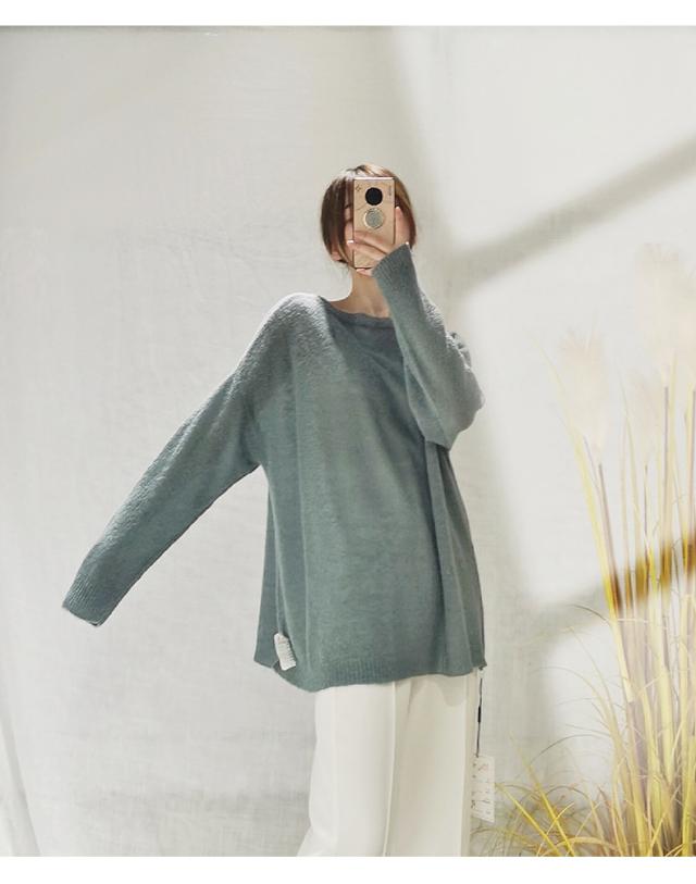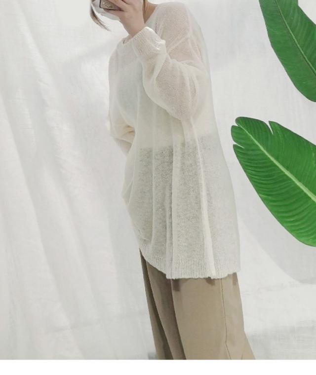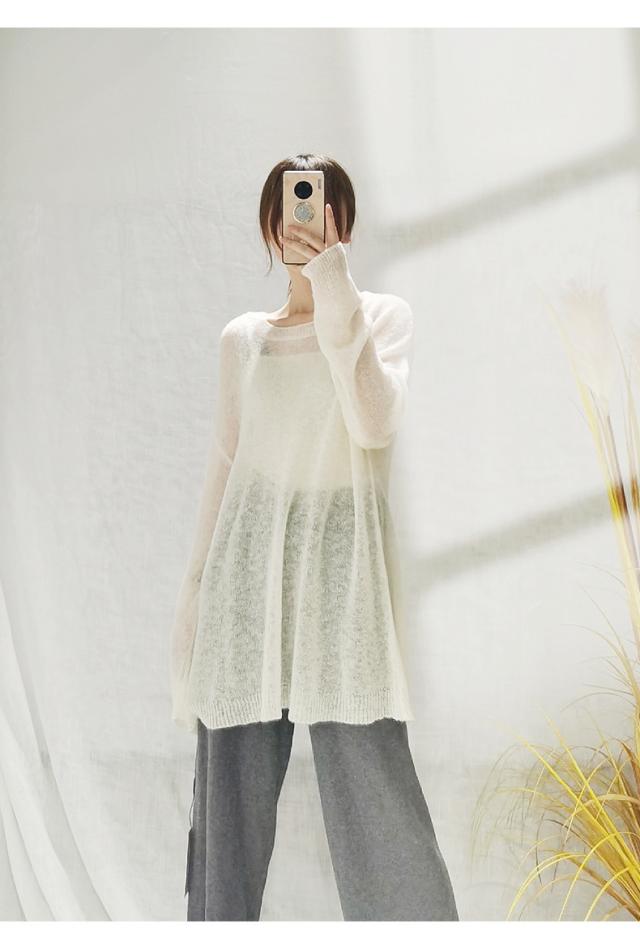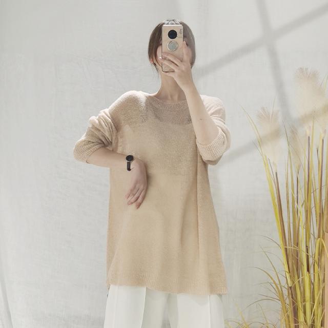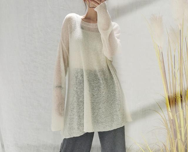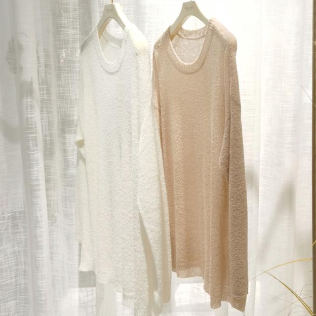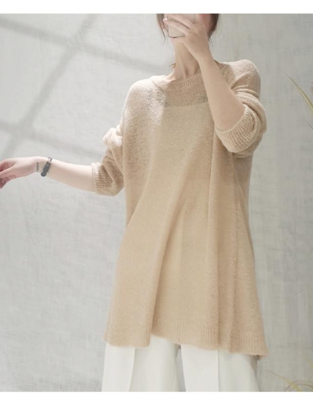 サマーニット 夏 無地 丸首 カジュアルオフィス 通気性 ゆったり 柔らかい 快適 おしゃれ 伸縮性 ウール 長袖