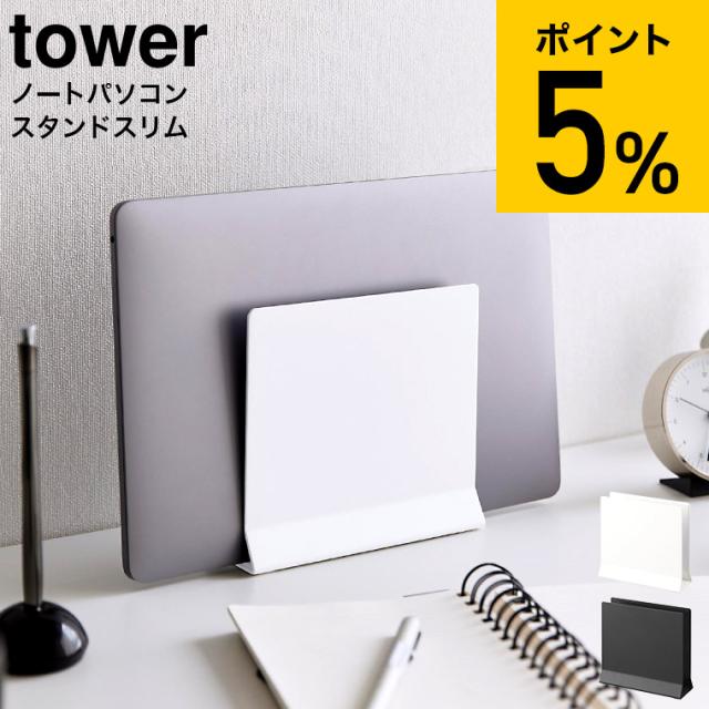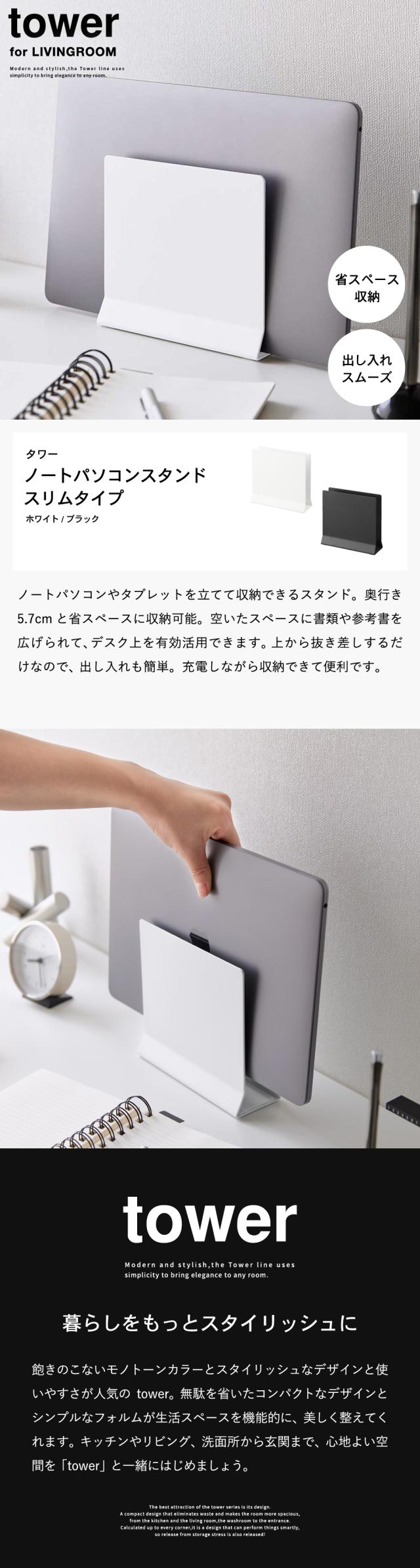 tower 山崎実業 スリムノートパソコンスタンド タワー ホワイト ブラック 4498 4499 送料無料 縦置き タブレットスタンド ノートPCスタンド 収納 リモートワーク デスク リビング タワーシリーズ yamazaki