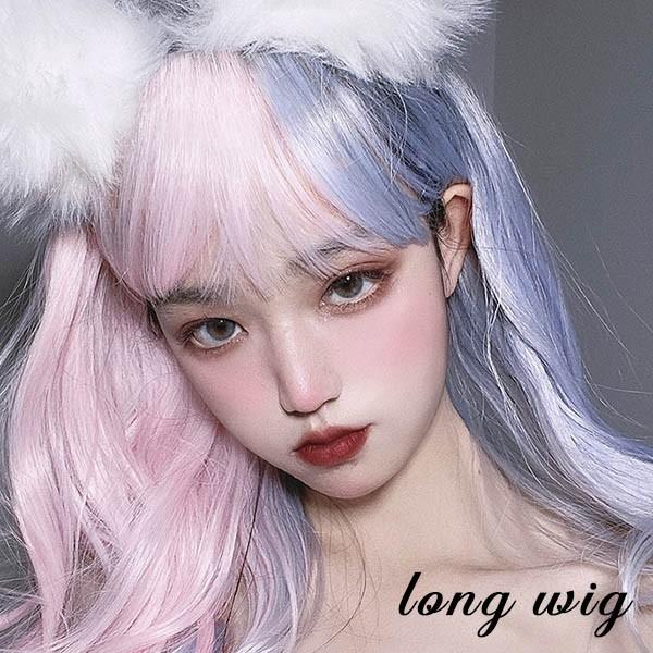 【レビュー投稿で+5%還元】ウィッグ レディース フルウィッグ ロング 巻き髪 ブルー ピンク ぱっつん前髪 前髪あり 可愛い かわいい 大人用 コスプレ ロリータ ゴスロリ コスチューム 原宿風 仮装 超自然 かつら wig Lolita 小顔 文化祭 イベント 学園祭 ハロウィン