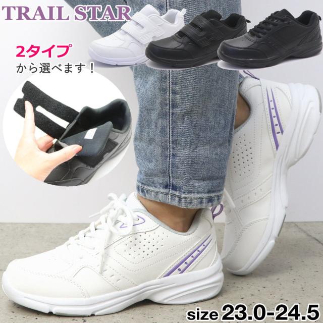 レディース 婦人 スニーカー マジックテープ 紐靴 白靴 ホワイトスニーカー 真っ黒 No.2183 No.2184