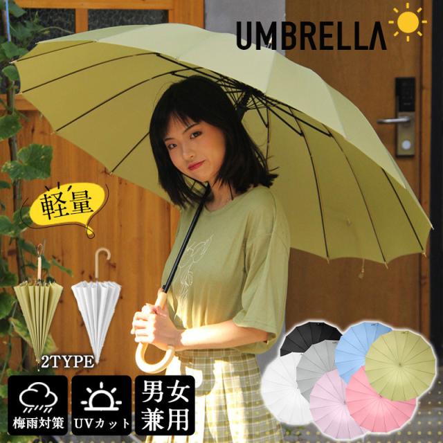 雨傘 長傘 レディース メンズ 16本骨 通勤 通学 軽量 長柄 日傘 おしゃれ 梅雨 頑丈 大きめ 高温対策 耐風傘 UVカット