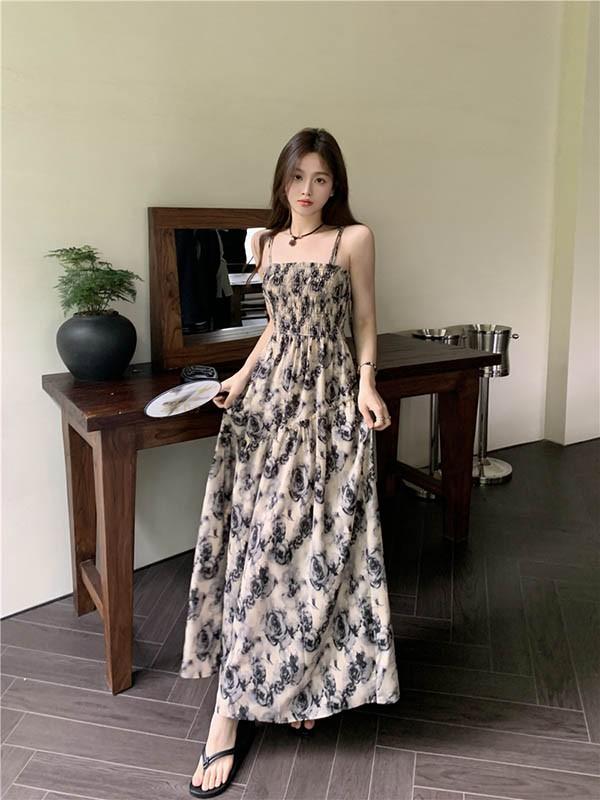 【商品名】リゾートワンピース 大人可愛い 夏ワンピース リゾートワンピ ワンピース ワンピース ハワイ ハワイアン 沖縄 夏 ノースリーブ キャミソールワンピース 結婚式 レディース サマー ロングワンピ 体型カバー 海外旅行 小柄 おしゃれ ボヘミア風 dg151n1n1l9