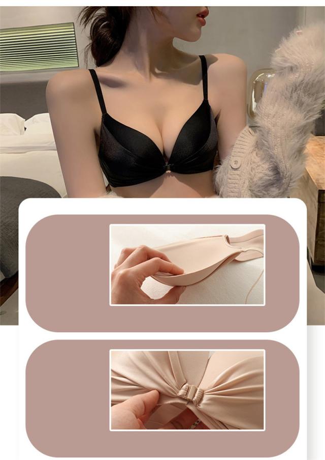 ショーツセット レディース 前開け ブラジャー ノンワイヤー ブラセット 美胸 ブラショーツセット 谷間 下着 女性 上下セット