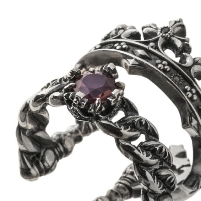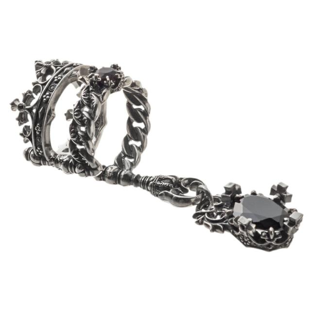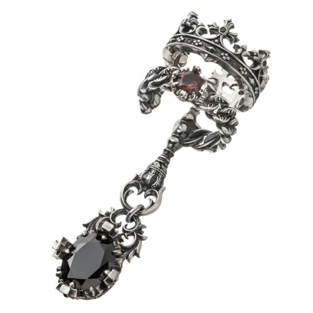 クラウンと喜平の2連リングのイヤーカフに、石座王冠のドロップピアスを