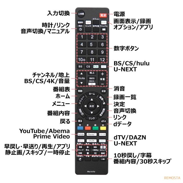 FUNAI フナイ テレビリモコン FRM-109TV FRM-110TV FRM-111TV FRM-112TV FRM-115TV FL- FE- REMOSTA 代用リモコン