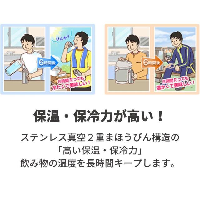 ・ステンレス真空2重構造で高い保温・保冷力を持っています。
