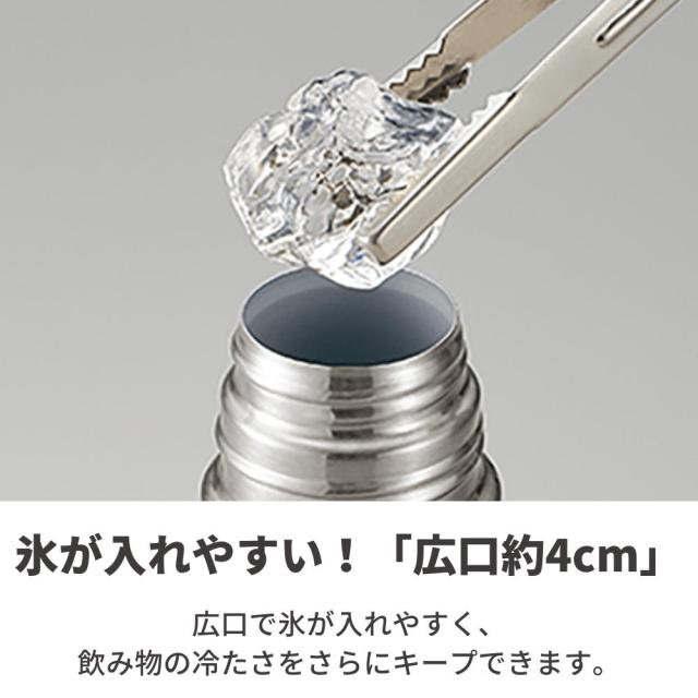 氷が入れやすい広口約4cmで、飲み物の冷たさをさらにキープできる設計です。