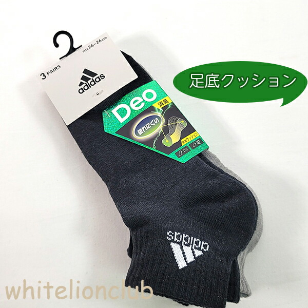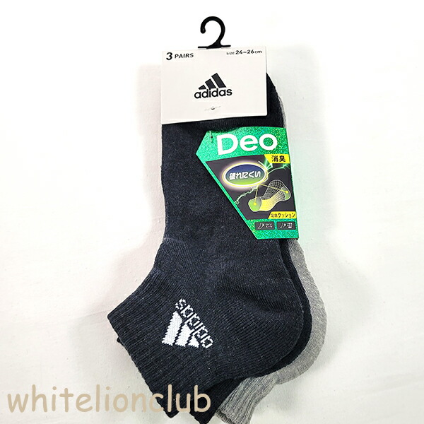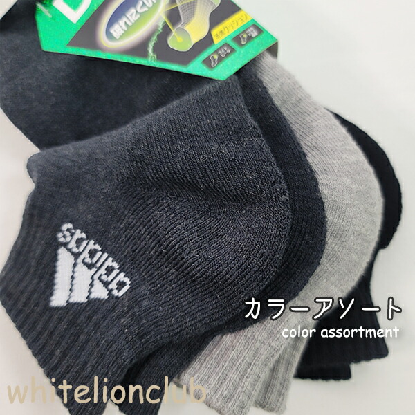 福助 アディダス ショートソックス 3足組 06022W 消臭 ワイドヒール 24-26cm/26-28cm | ショート丈 スポーツソックス アンクル丈 靴下 ソックス adidas
