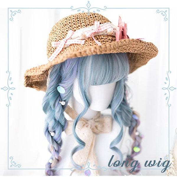ウィッグ レディース フルウィッグ ロング グラデーション 巻き髪 ぱっつん前髪 前髪あり 可愛い かわいい 大人用 コスプレ ロリータ ゴスロリ コスチューム 原宿風 仮装 超自然 かつら wig Lolita 小顔 文化祭 イベント 学園祭