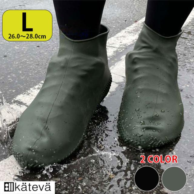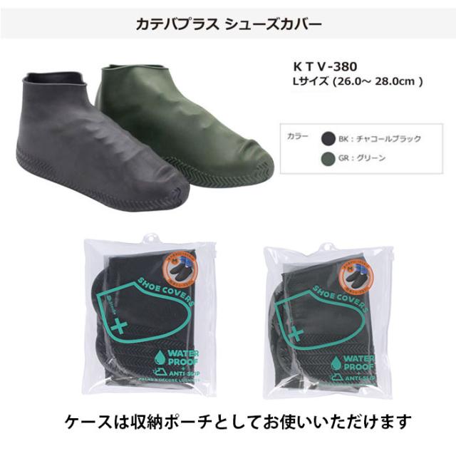 26?28cm対応 カテバ プラス シューズカバー 靴カバー ブラック 黒 グリーン kateva+ KTV-380 Lサイズ 防水 滑りにくい