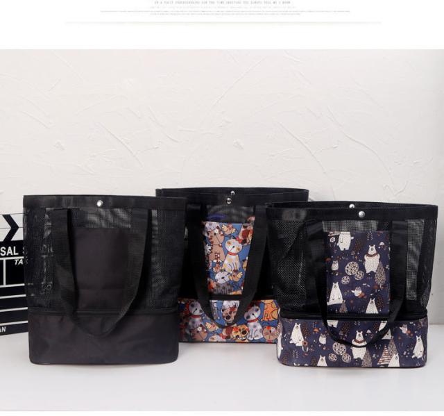プールバッグ ビーチバッグ トートバッグ 水泳バック 水着バッグ スイムバッグ メッシュバッグ 乾湿分離 大容量 肩がけ 水着入れ 二層式 バス用品 温泉 海 夏