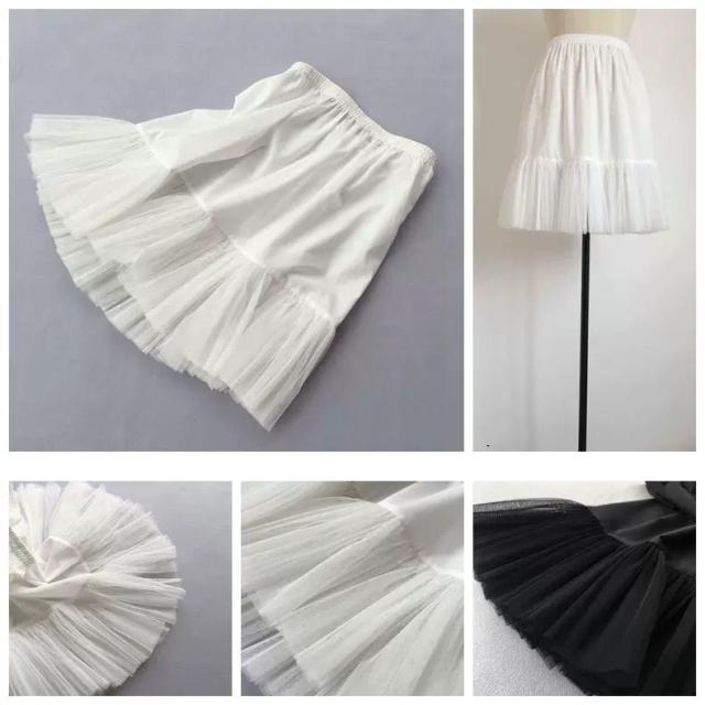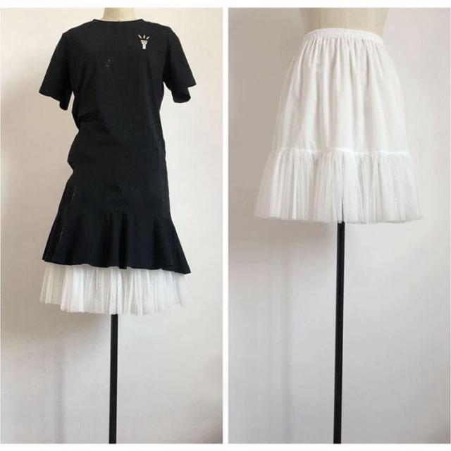 送料無料 全8サイズ ペチコート ロング スカート ペチスカート 黒 白 ロング スカート プリーツ インナースカート 裾チュール レイヤード 重ね着