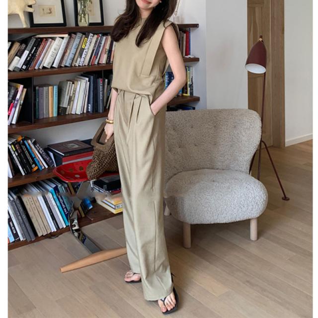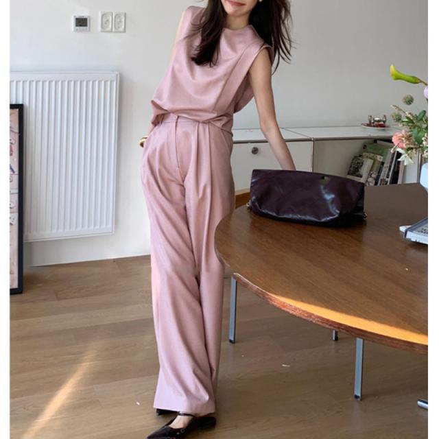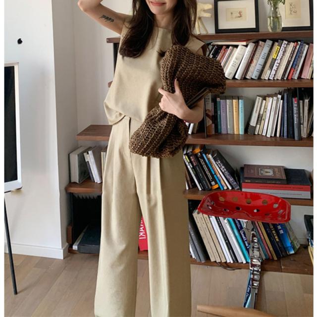 ワイドパンツ セットアップ レディース ノースリーブ Tシャツ ブラウス きれいめ 着痩せ おしゃれ 涼しい