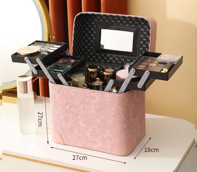 メイクボックス 鏡付き 大容量 トレイ付き コスメ収納 コスメボックス コンパクト 化粧箱 花柄 防水