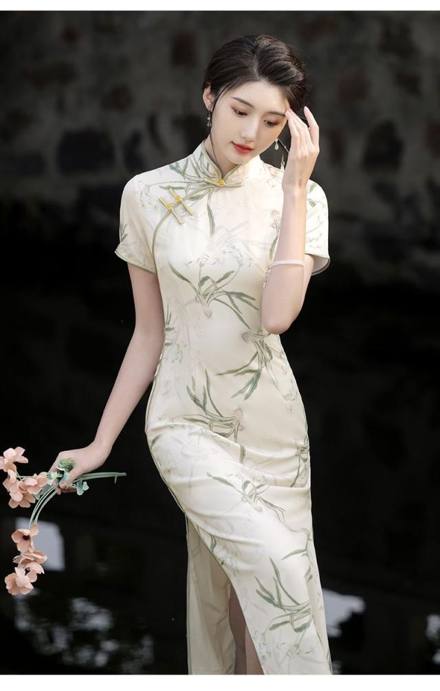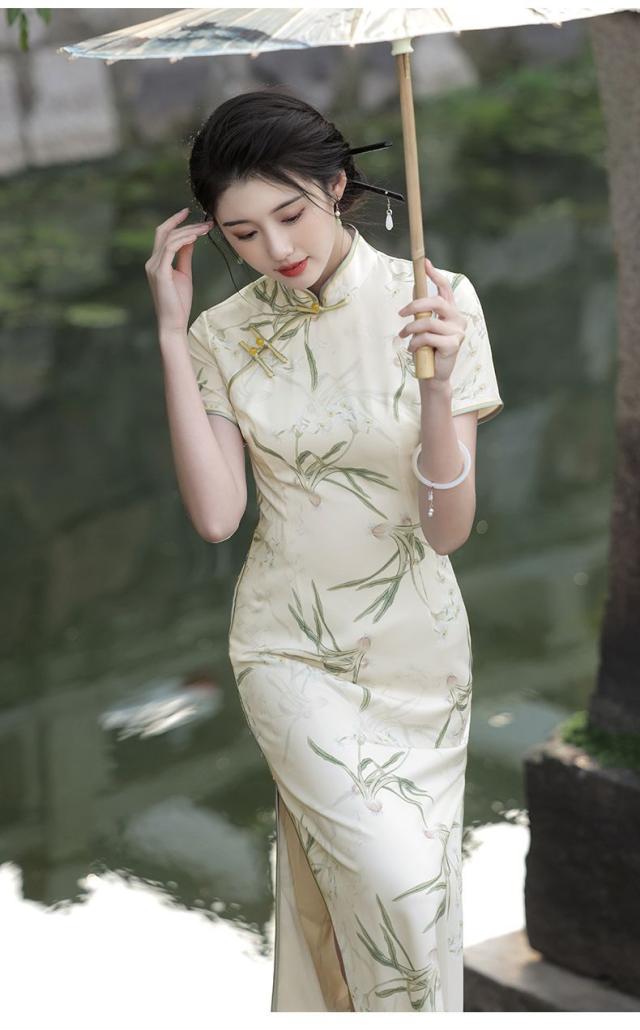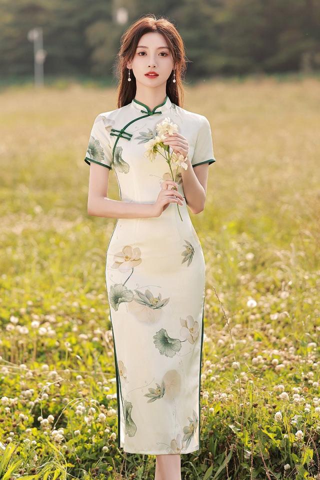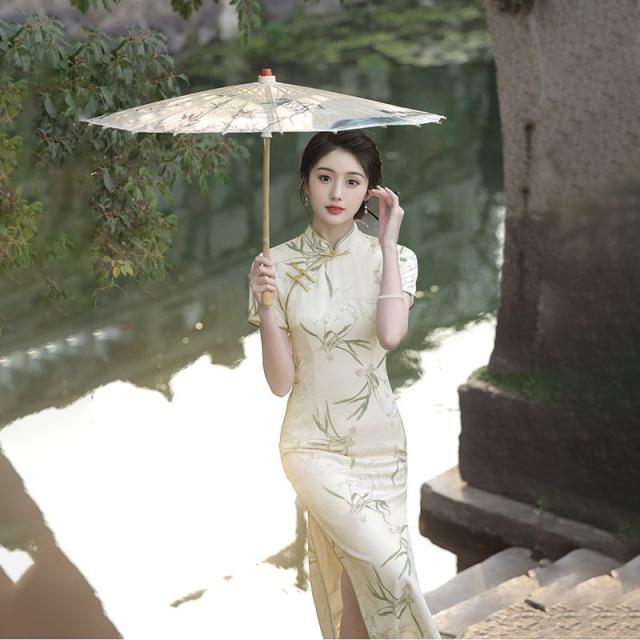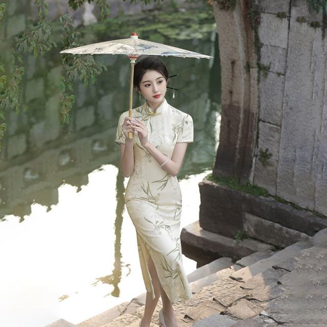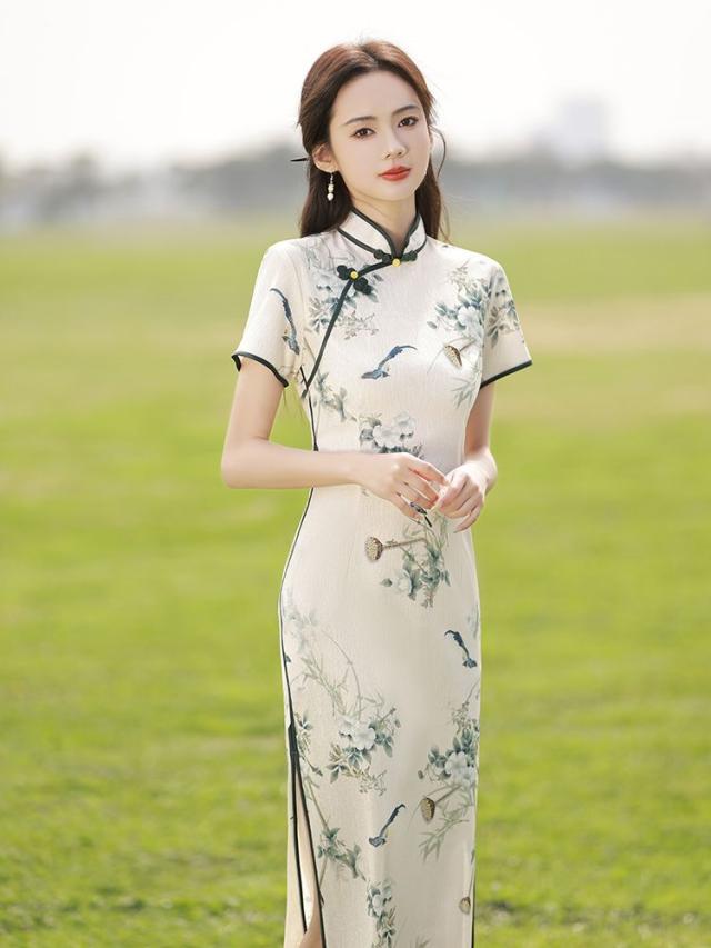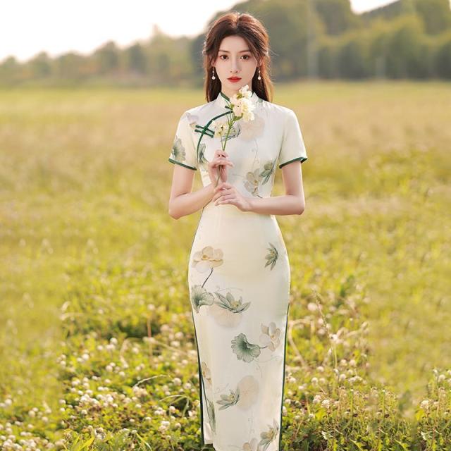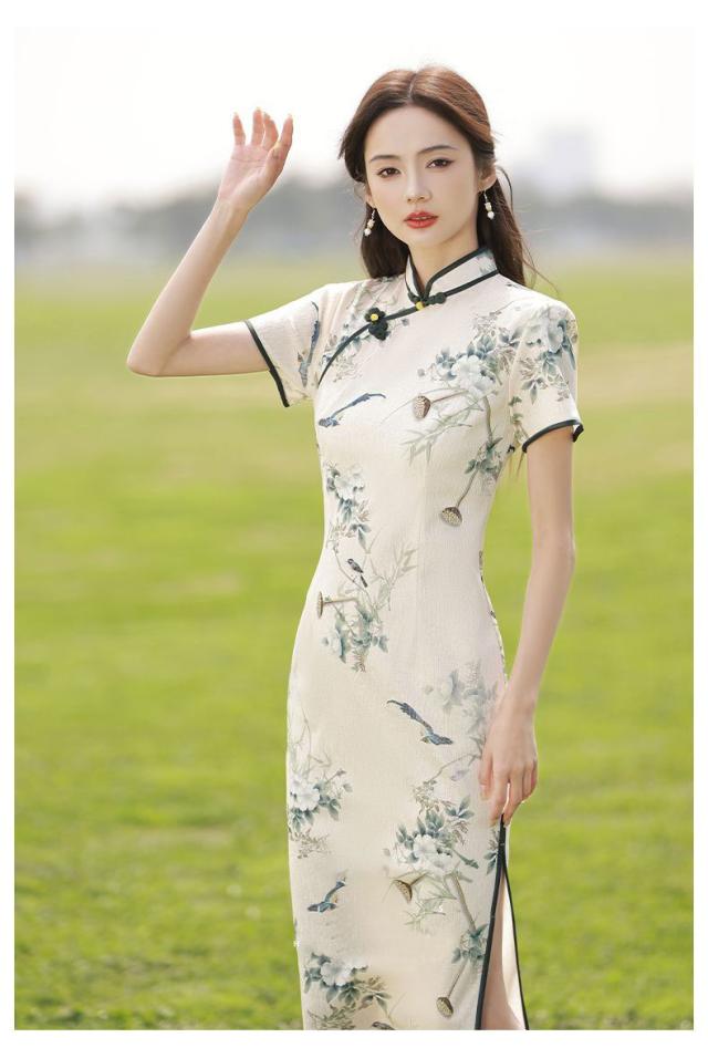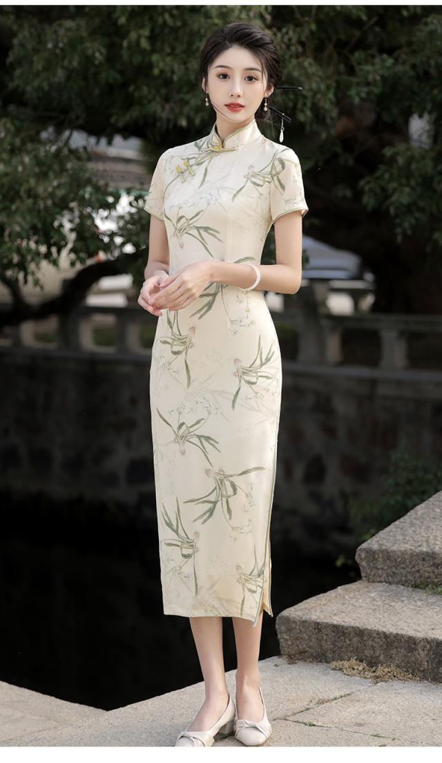 送料無料 チャイナ風 ワンピース 立ち襟 半袖 チャイナドレス レーディス 夏 袖あり ロングワンピース コスプレ 着痩せ スリム 花柄 パーティードレス お呼ばれ 結婚式 二次会 フォーマル 通勤