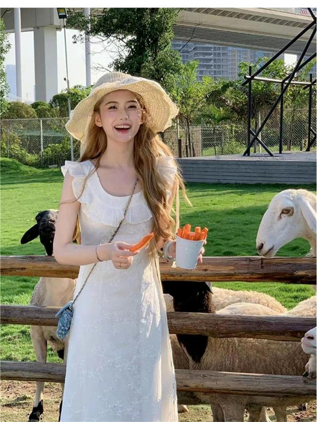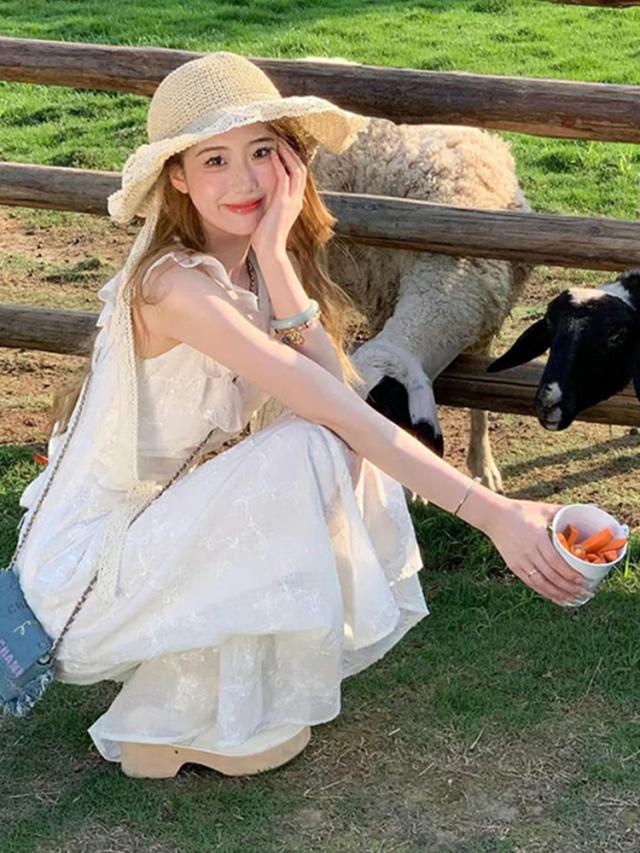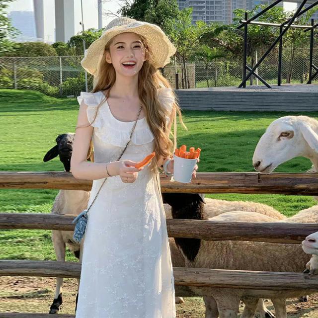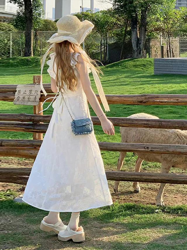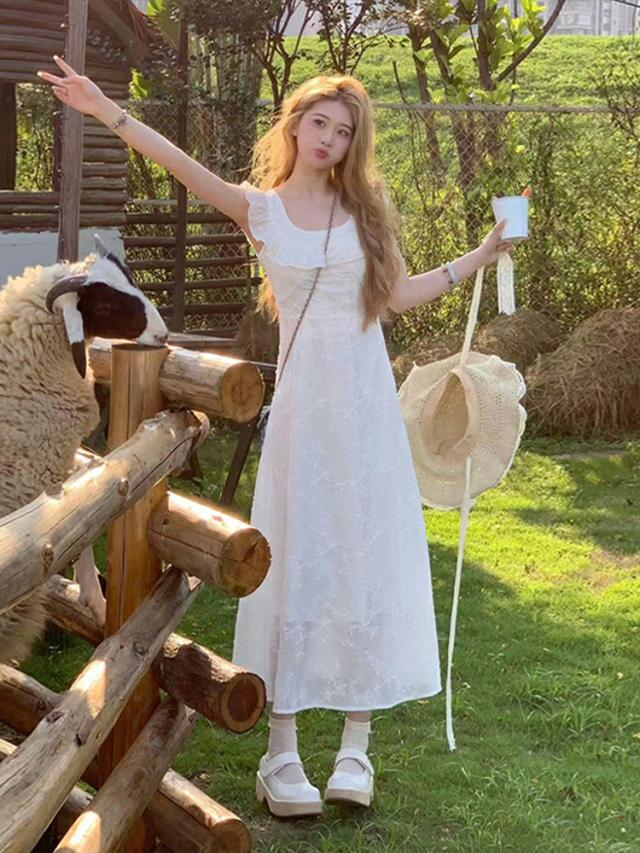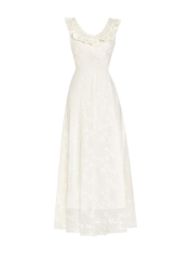 白ワンピース レディース 夏 リゾート ノースリーブ aライン フリル マキシ 花柄 ロング丈 きれいめ おしゃれ かわいい 着?せ お嬢様
