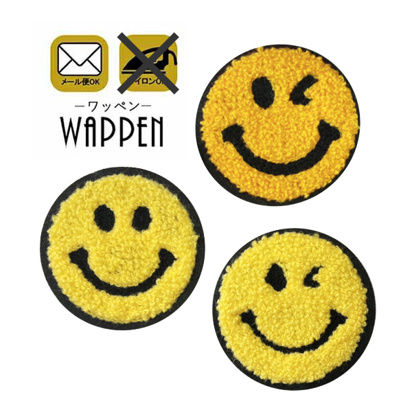 スマイル ワッペン 刺繍 縦6.2cm×横6.2cm smile にこちゃん ニコちゃん手芸 かわいい おしゃれ わっぺん WAPPEN wappen アップリケ あっぷりけ