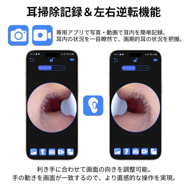 3.5mm極細レンズで映った画像を360°回転することができ、自分の利き手を合わせて角度を変えて四方八方全体見え、付着している細かい耳垢でも見逃しません。