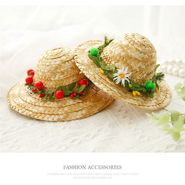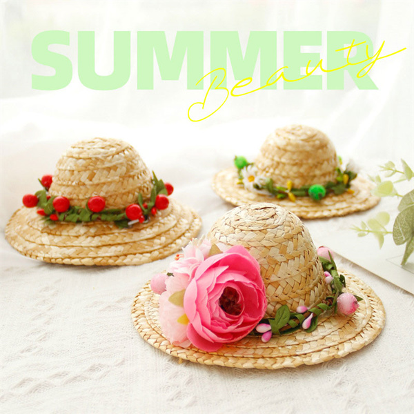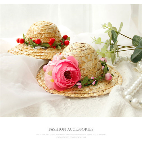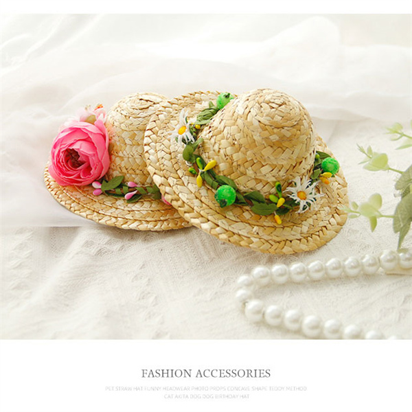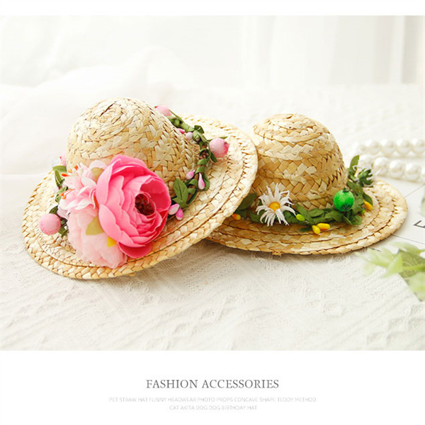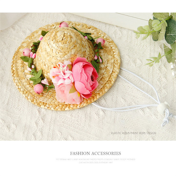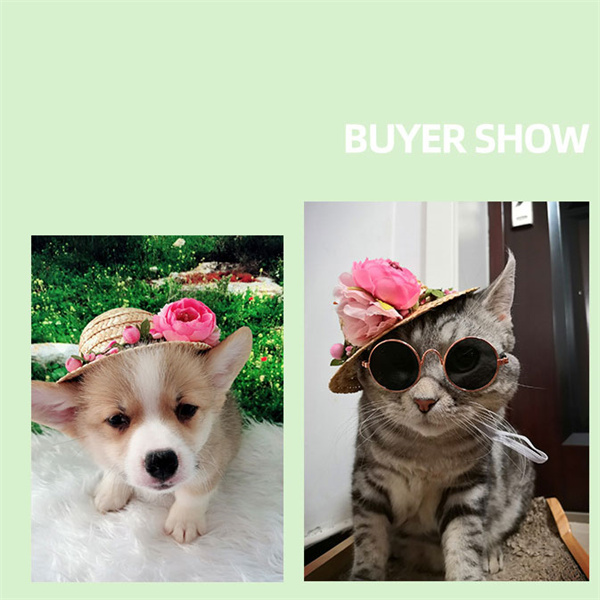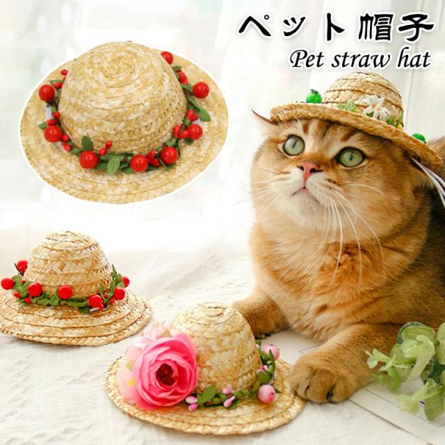 ポイント超超祭 ペット用帽子 麦わら帽子 帽子 花飾り ストローハット ペット用品 犬用品 犬の帽子 猫用品 日焼け止め 熱中症対策 あごひも付き かわいい 撮影