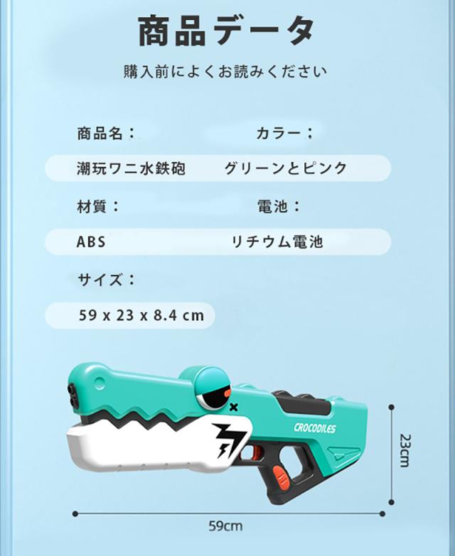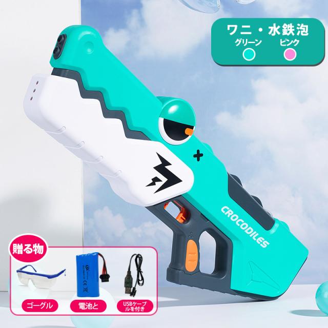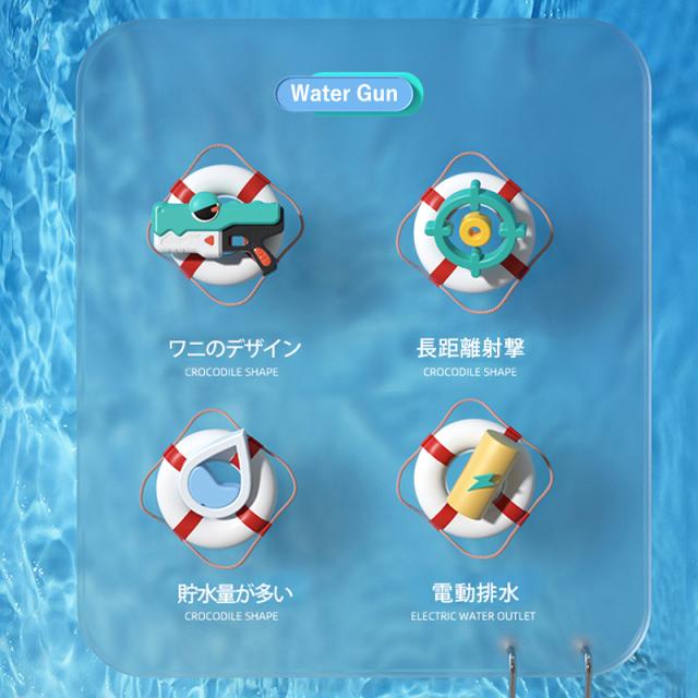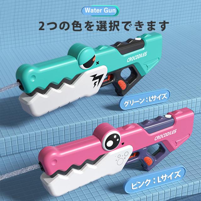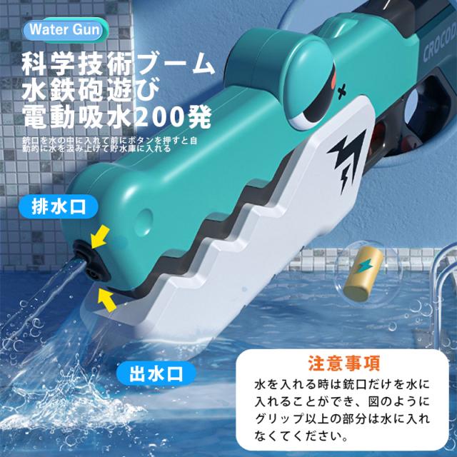 水鉄砲 電動ウォーターガン 電動水鉄砲 おもちゃ ワニ 連発 遠距離 自動吸水 水鉄砲合戦 保護メガネ付き 水遊び 夏休み プレゼント