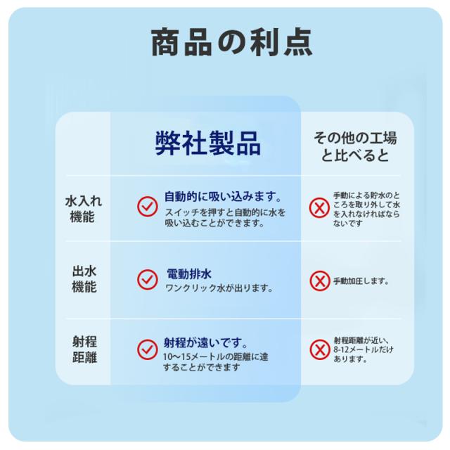 【10〜15m超強力飛距離】強力なモーターが内蔵されており、爽やかに感じられる水が出て、最長15mを発射することもできます。楽に水鉄砲合戦を遊べます。