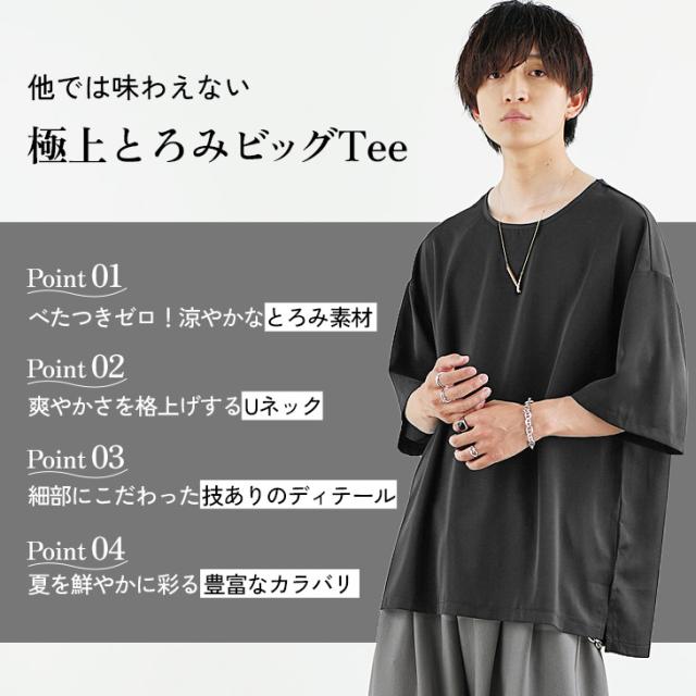オーバーサイズに仕上げることで、肌への接触を減らし快適な着心地を実現する半袖Tシャツ。とろみ感抜群の生地を使用することで、動きに合わせて滑らかに動く揺れ感が特徴的なアイテムに。