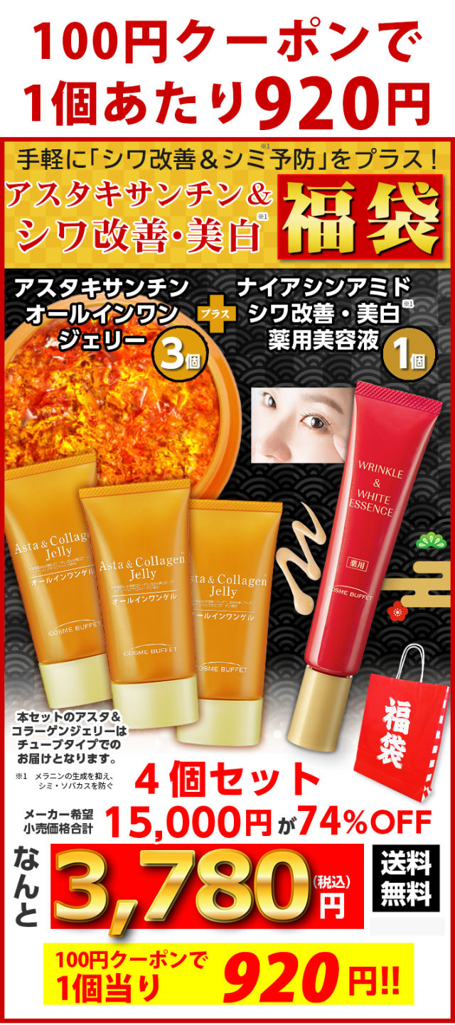 コスメビュッフェ アスタ&コラーゲンジェリー 50g 3個 + コスメビュッフェ 薬用リンクル&ホワイトエッセンス 30g 1本