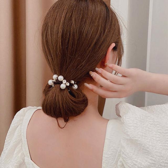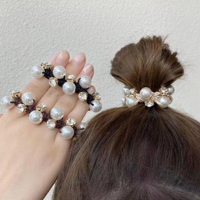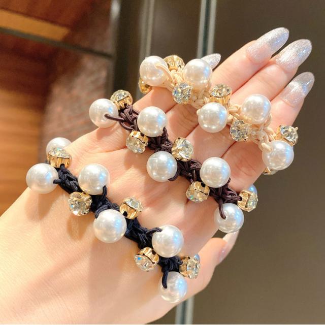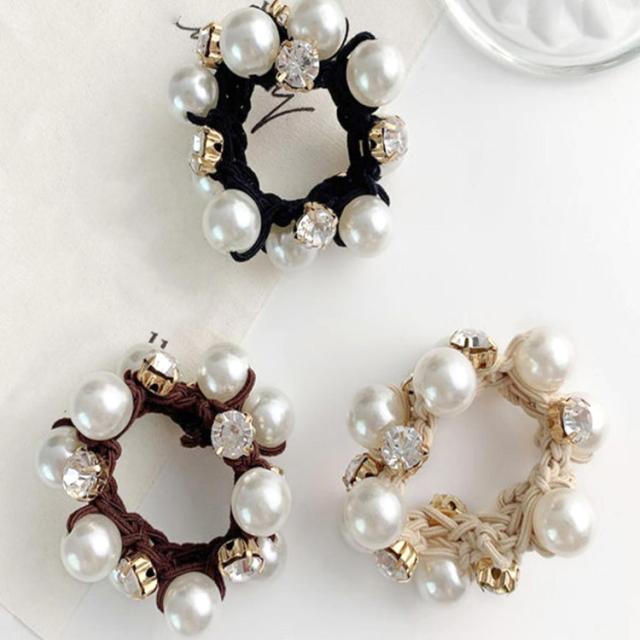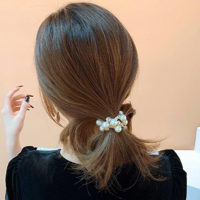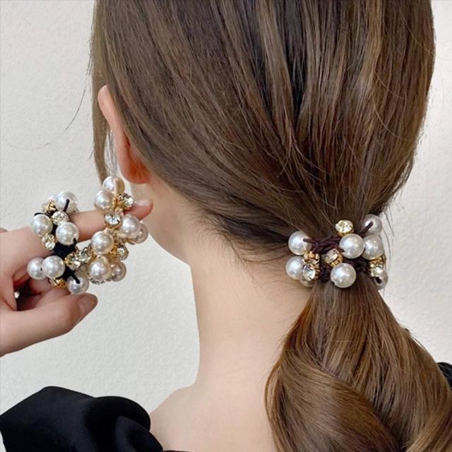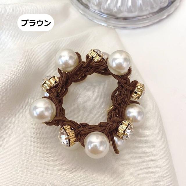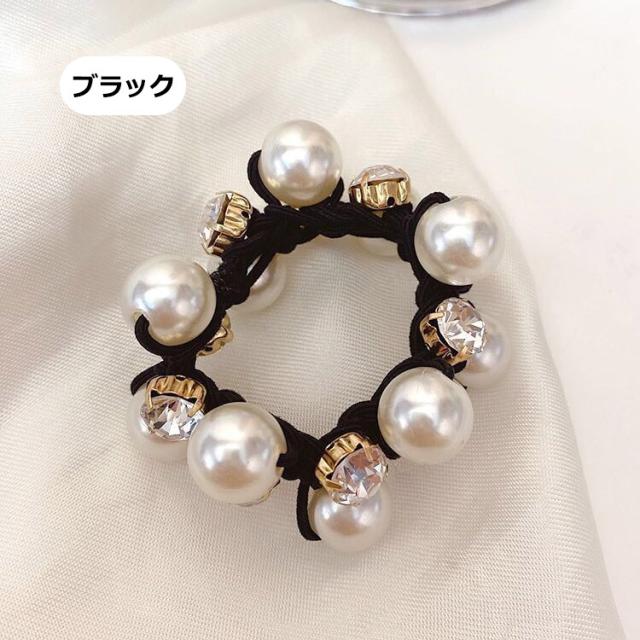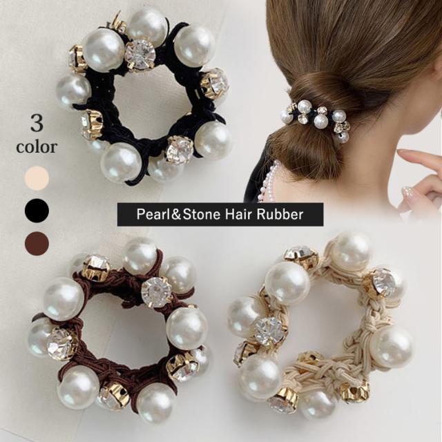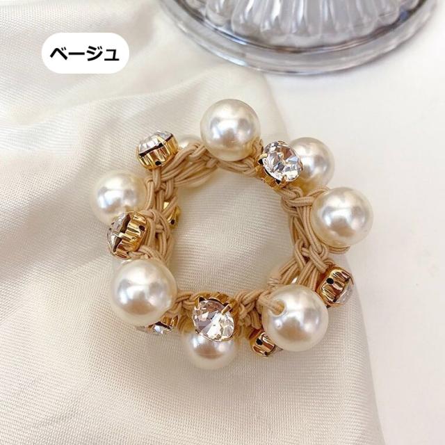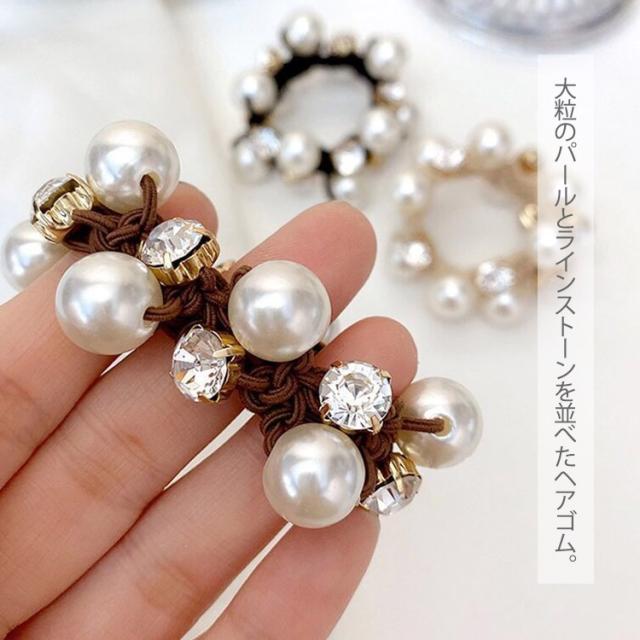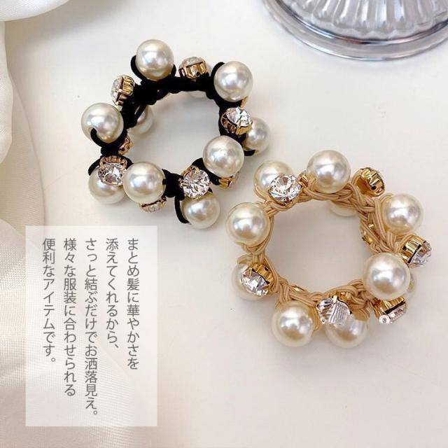 1+1=2個セット ヘアゴム ヘアアクセサリー パール ストーン 華やか 上品 エレガント ガーリー かわいい キラキラ 編み込み 太め 韓国 ヘアRubber