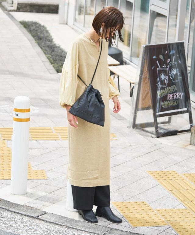 つるんとした生地感なので、ボリューム袖ですがアウターも羽織りやすいのが嬉しいところ。