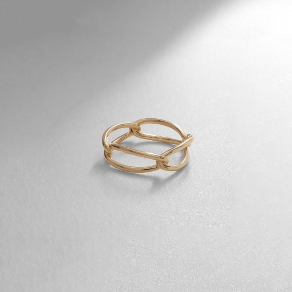 単品でも目を引きますが細身のリングと複数コーディネートするのもおすすめ。