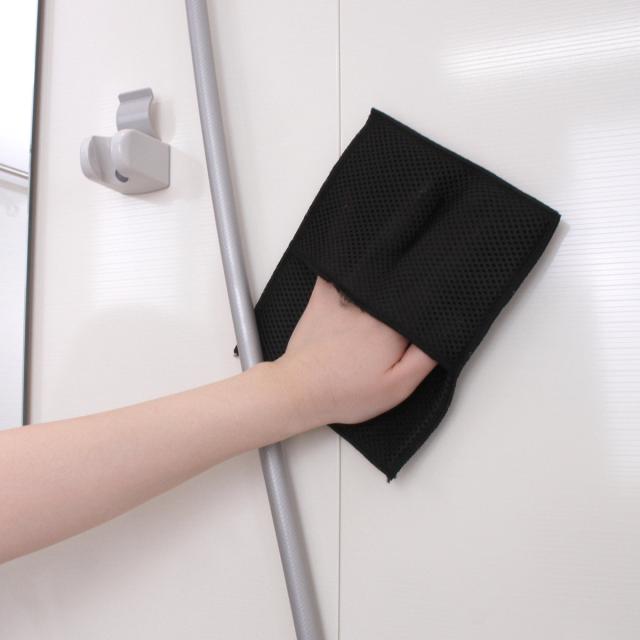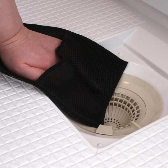 手がズレにくいステッチ付きなので力を入れやすく、お風呂場の壁や床から排水口、浴槽まで幅広くお掃除していただけます。