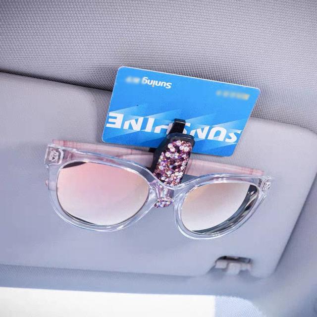 送料無料 メガネホルダー 車 カードホルダー キラキラ サングラスホルダー 車載 車用 収納 サンバイザー メガネクリップ メガネ ホルダー サングラス ホルダー クリップ