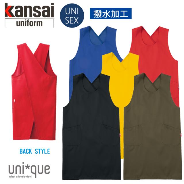 カンサイ ユニフォーム ドレスエプロン かぶりタイプ 00044 無地 防汚 撥水 撥油 帯電防止 男女兼用 山本寛斎 kansai 大川被服