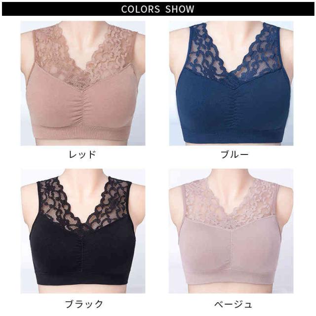 ブラジャー ノンワイヤーブラ ナイトブラ レースブラジャー カップ付き ストレンチ ノンワイヤーブラジャー ハーフトップ おうちブラ ナイトブラ 下着 インナー 大きいサイズ 幅広 パッド入り 高齢者 祖母 送料無料