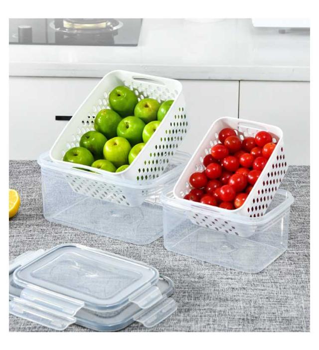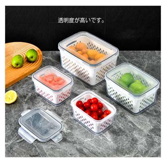 | 【 3個セット 水切り付き保存容器 】 【高品質の食品グレードの安全PP素材】 水切り付き★ 外層は水を貯蔵できます。 蓋も付属しています。 積み重ねて使用できます。 透明度が高いです。 | |