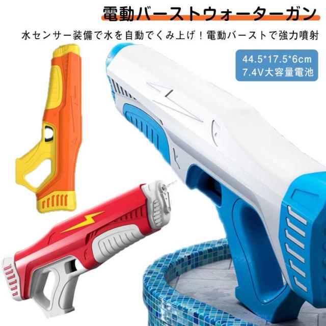 水鉄砲 電動 超強力飛距離 高速連発 水自動吸い込み 約7-9m 500mL大容量 電動水ピストル 水鉄砲合戦 ウォーターガン 水てっぽう 電動式水鉄砲 バーストウォーターガン 大人/子供用 海水浴/プール/川遊び お風呂水鉄砲 おもちゃ 水センサー付き 水遊び