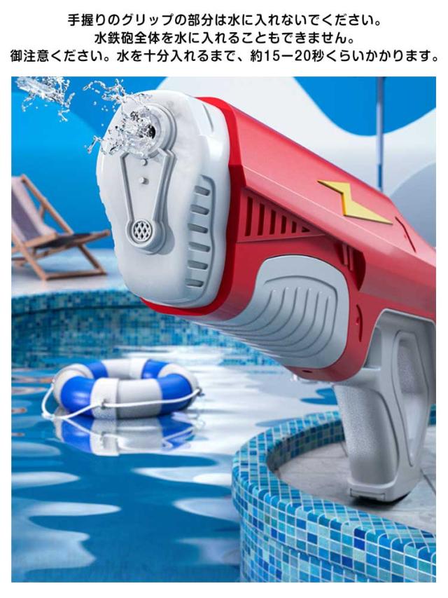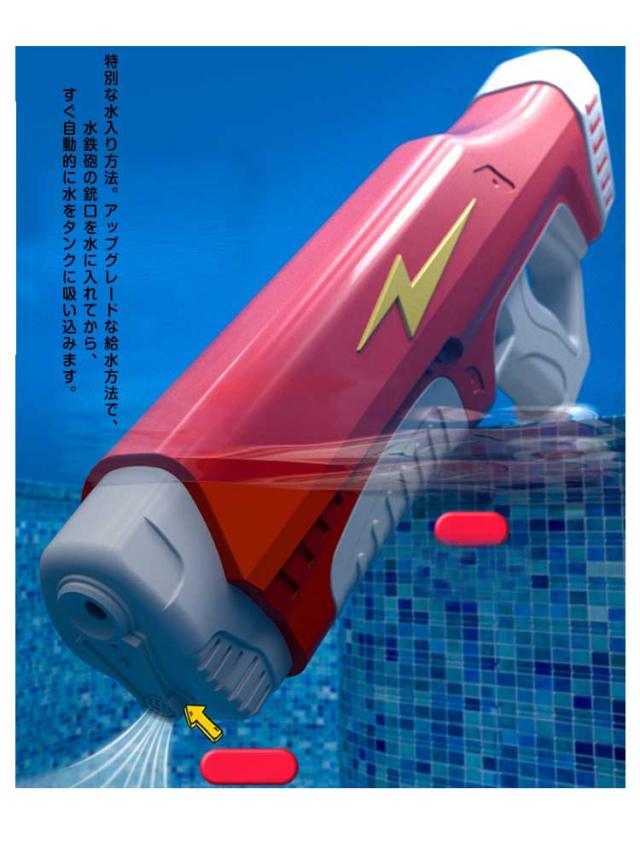 | 水センサー装備で水を自動でくみ上げ!電動バーストで強力噴射! パワーが超強くタンクに入れた水を高速で穏やかに連発発射できるおしゃれな電動連射式水鉄砲。タンクに十分水を吸い込んでから、200発くらい発射できます。 特別な水入り方法。アップグレードな給水方法で、水鉄砲の銃口を水に入れてから、すぐ自動的に水をタンクに吸い込みます。手握りのグリップの部分は水に入れないでください。水鉄砲全体を水に入れることもできません。御注意ください。水を十分入れるまで、約15ー20秒くらいかかります。 大容量500mLタンク。一回タンクに水を十分加えてから約200+発を発射できます。パワー強い電動連射式水鉄砲、7-9メートルの遠距離射程があります。信頼できるリチウムバッテリーの備え、十分電力のおかげで、3000発くらい発射できます。 手握りのグリップは快適な手触りを与え、回転させて角度を調整できます。衝突を恐れず、落下に十分に耐える。 電動バーストの勢いが強いので、短距離での打ち合いなどのご使用をお控えください。 | |