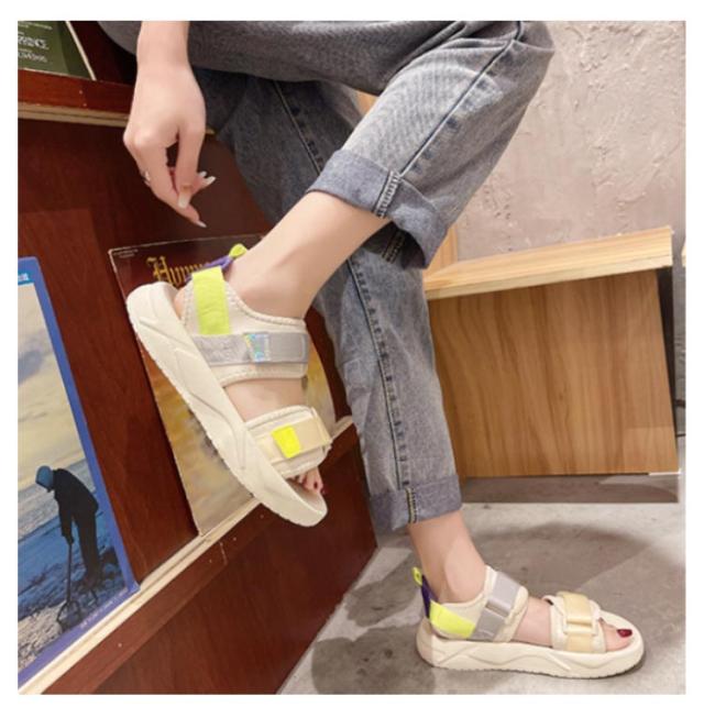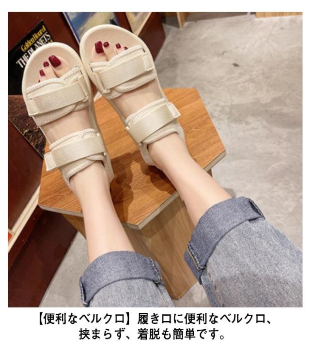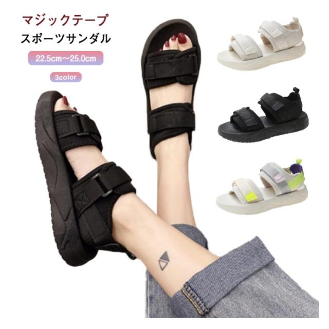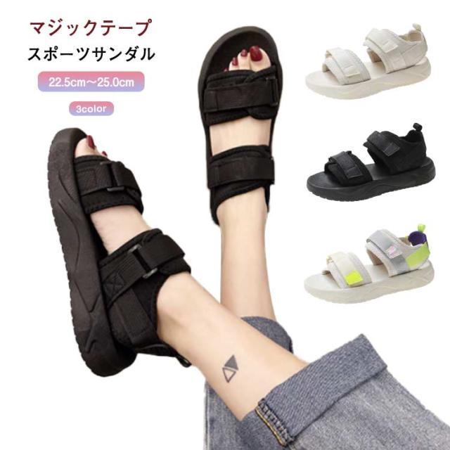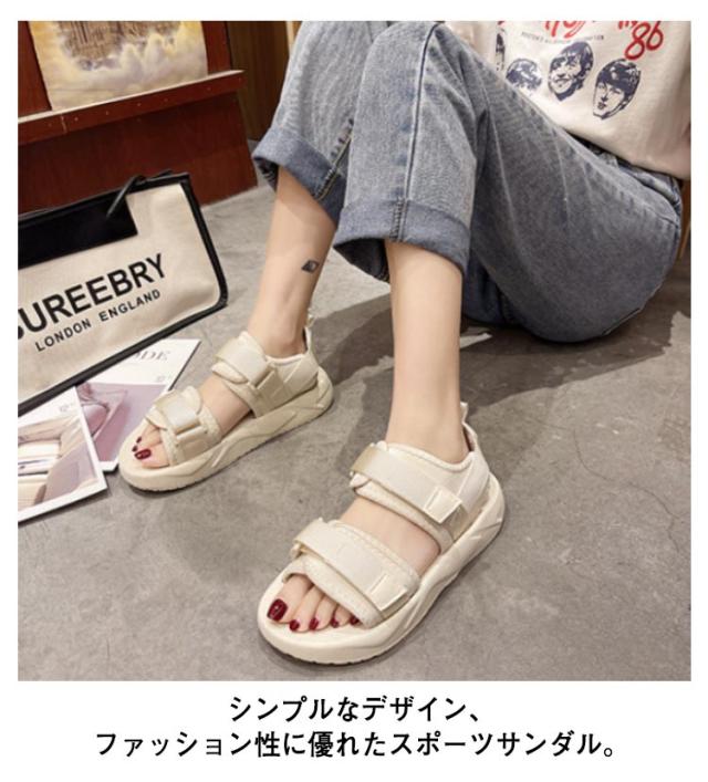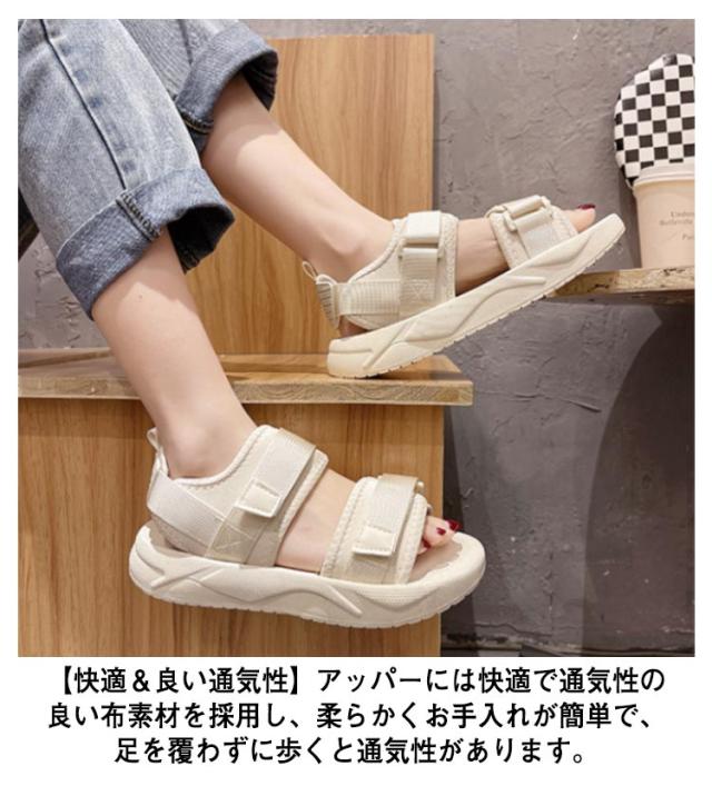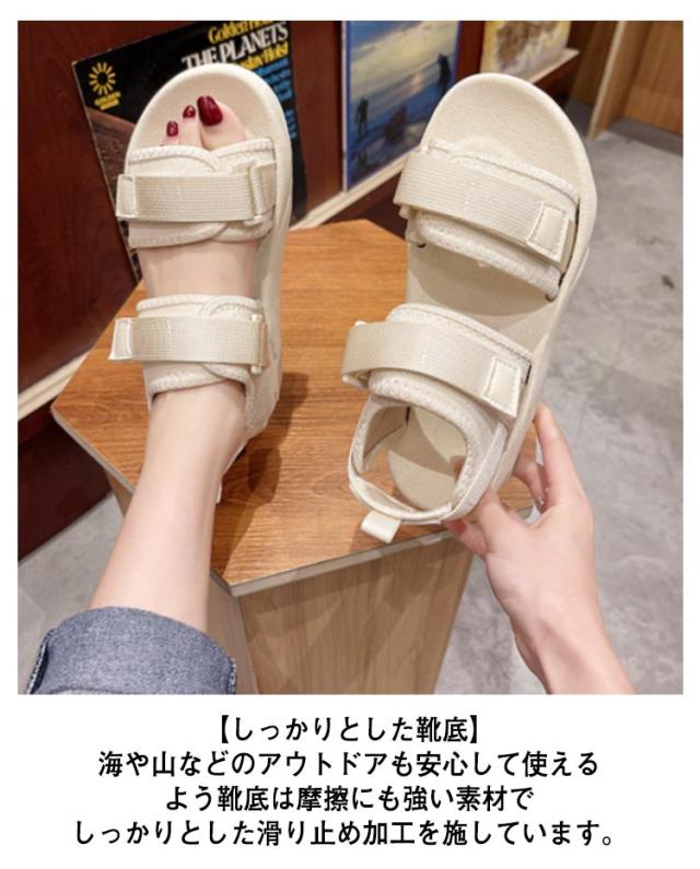 送料無料 サンダル 厚底 レディース サンダル スポーツサンダル 厚底サンダル スポーティ 美脚 軽量 疲れない おしゃれ 歩きやすい シューズ コンフォートサンダル カジュアル シンプル 旅行 通気性 22.5cm-25.0cm マジックテープ ビーチサンダル 黒 ベージュ