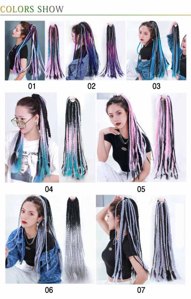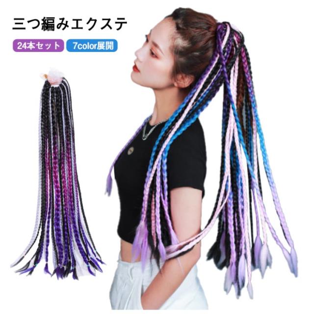 24本セット ヘアゴム エクステ 三つ編み 編み込み キッズ 大人 グラデーション ダンス 衣装 ブレイズエクステ カラフル ポニーテール ドレッド エクステンション つけ毛 子供 ウィッグ 髪 髪の毛 付け髪 女の子 派手 ヘアアクセサリー セルフ ヘア レディーズ