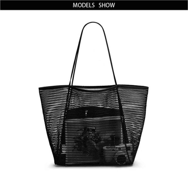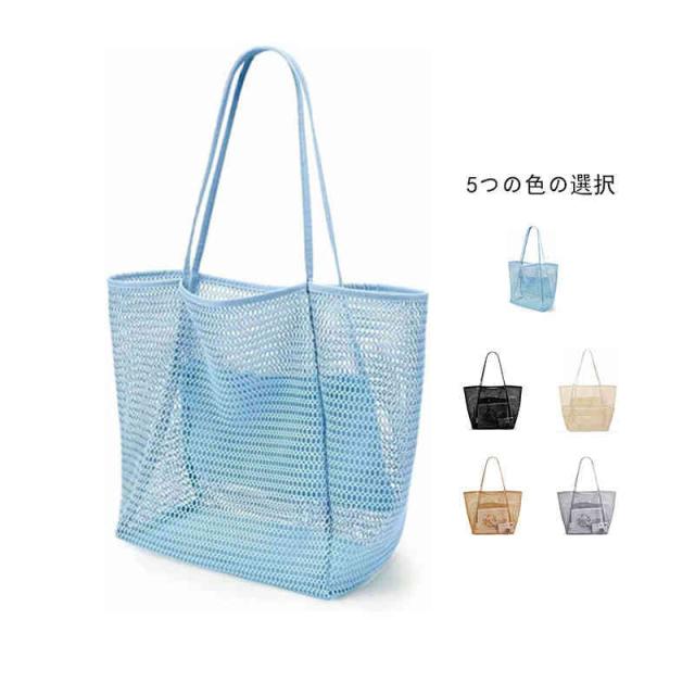 送料無料 プールバッグ トートバッグ メッシュ バック レディースバッグ ママバッグ 軽量 軽い 通勤 旅行 大容量 お洒落 おしゃれ 46*33*33*14cm 夏 中身が透ける メッシュバッグ 洗える