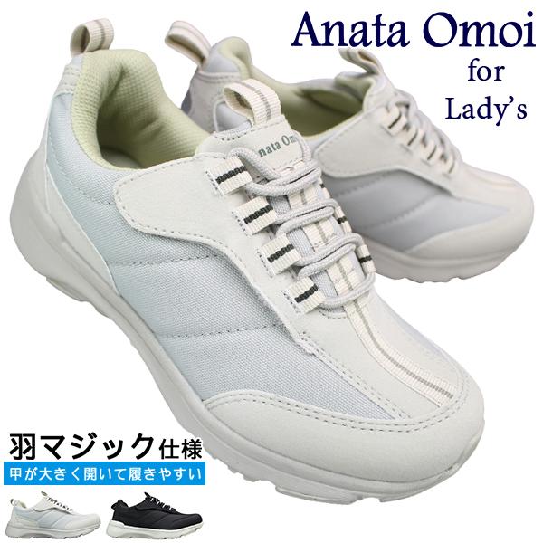 レディーススニーカー ME3950 羽マジックシューズ(婦人) ブラック グレー 22.5cm〜24.5cm マジックテープ 面ファスナー 幅広 軽量 あなた想い onataomoi 阪神素地ME3950