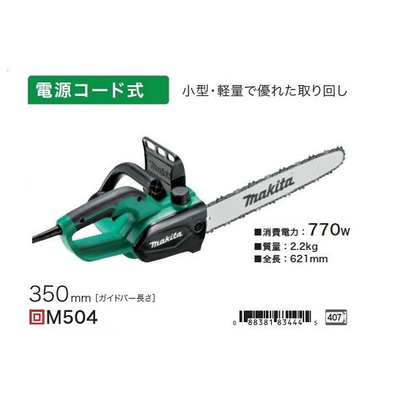 マキタ M504 電動式チェーンソー ガイドバ−長さ350mm AC100V 小型・軽量で優れた取り回し 新品