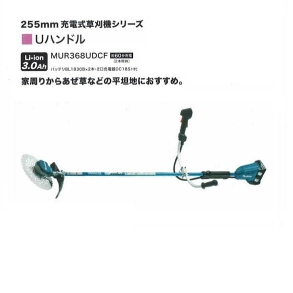 送料無料 マキタ MUR368UDCF 18Vx2=36V 充電式草刈機 Uハンドル仕様 255mmDCホワイトチップソ−付 3.0Ahバッテリ2個付セット 新品 代引不可 一部地域発送不可