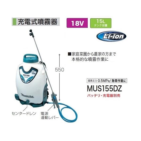 マキタ MUS155DZ 18V充電式噴霧器 タンク容量15L 最大圧力0.5MPa 背負い式 本体のみ バッテリ・充電器別売 除草作業に 新品 代引不可