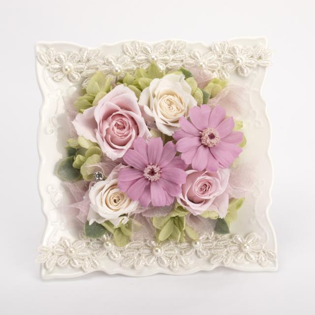 人気のピンクホワイト系デザインのプリザーブドフラワーです。
